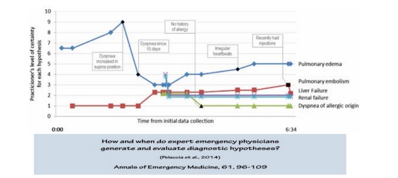 La dernière grosse différence est que les médecins seniors orientent leur examen et leur interrogatoire en fonction des hypothèses diagnostiques déjà formulées, cherchant à éliminer ou à valider celles ci ou celle là quand les internes, eux, procèdent de façon « systématique », sans réfléchir sur le moment à ce que peut avoir le patient.